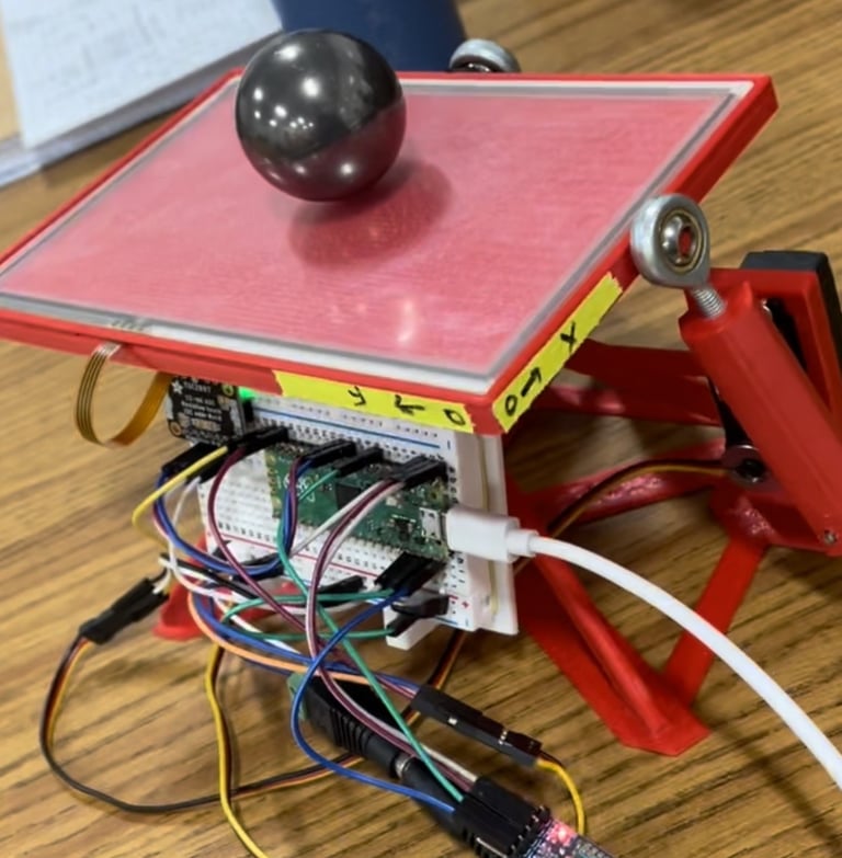 Designed a stainless steel ball stabilization system using Bluetooth-based selective positioning and a P.I.D. controller, implemented on a Raspberry Pi Pico platform.
